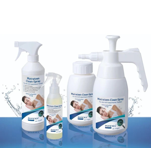 POTEMA® Matratzen Clean Spray Quelle: POTEMA GmbH Produkteigenschaften: Inaktiviert die Allergie auslösenden Stoffe im Milbenkot Reduziert die Fortpflanzung von Milben Beseitigt unangenehme Gerüche Entfernt leichte Flecken Riecht frisch und angenehm Für alle Matratzen, Sofas, Vorhänge und Textilien geeignet Mit natürlichem Orangenöl mehr Habe ich Ihr Interesse geweckt? Zögern Sie nicht. Rufen Sie mich an oder schreiben Sie mir.
